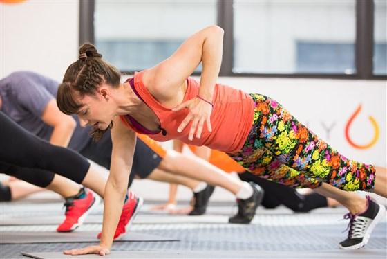 Pro tip: If holding your high plank is too challenging, do a modified standing version by placing your hands flat on a wall in front of you, and walking your feet out to your comfort zone. (The further from the wall, the harder it will be.)
