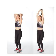 - Brace core and extend arms straight overhead.